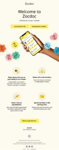 האתר שמציע הזמנת רופא אונליין בכל רחבי ארה”ב מקפיד לברך את מבקריו באופן אישי ולהציג להם במייל ברור את התועלות החזקות ביותר שיש ביכולתו להציע. המייל מזמין, שומר על שפת המותג ובעיקר קליל – גם אם מדובר בנושא כבד כמו בריאות או התמודדות עם מערכת הבריאות.