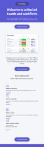 מי לא מכיר את הצבעים הבוהקים של מאנדיי, תוכנה לניהול פרויקטים ארגוניים. מאנדיי מקפידה לשלוח מייל ‘ברוכים הבאים’ לא רק למי שנרשם לתוכנה בפעם הראשונה, אלא גם לכל מי שנרשם לפיצ’ר. בשל העובדה כי מדובר במערכת טכנולוגית, מאנדיי מעניקה את כל אפשרויות התמיכה שרק ניתן לחשוב עליהן.